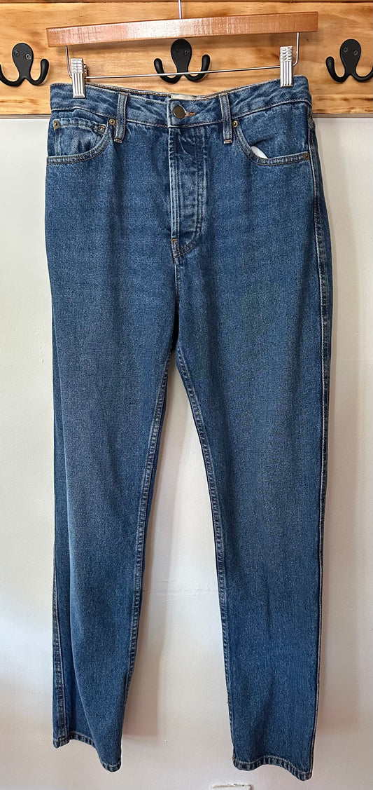 Sezane | "Brut Sexy" Medium/Dark Wash Tapered Jeans, 28