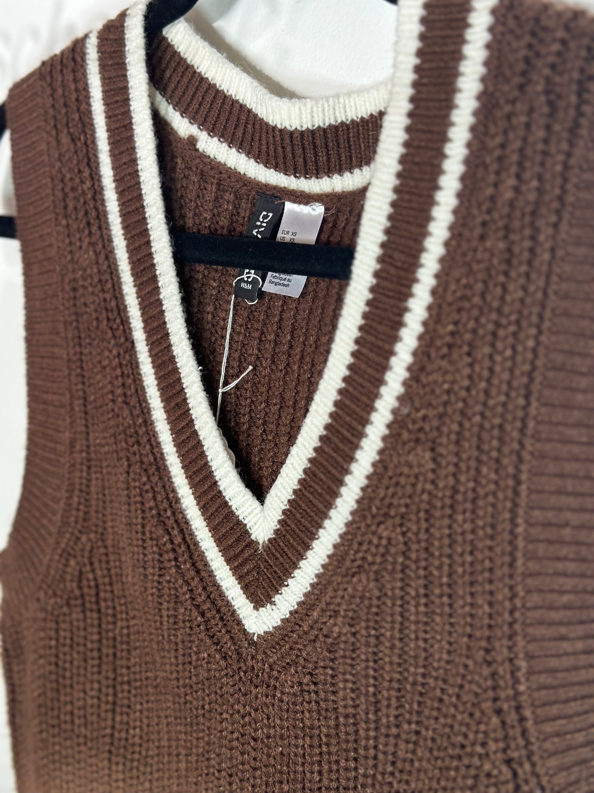 H&M | Brown & White Sleeveless Sweater