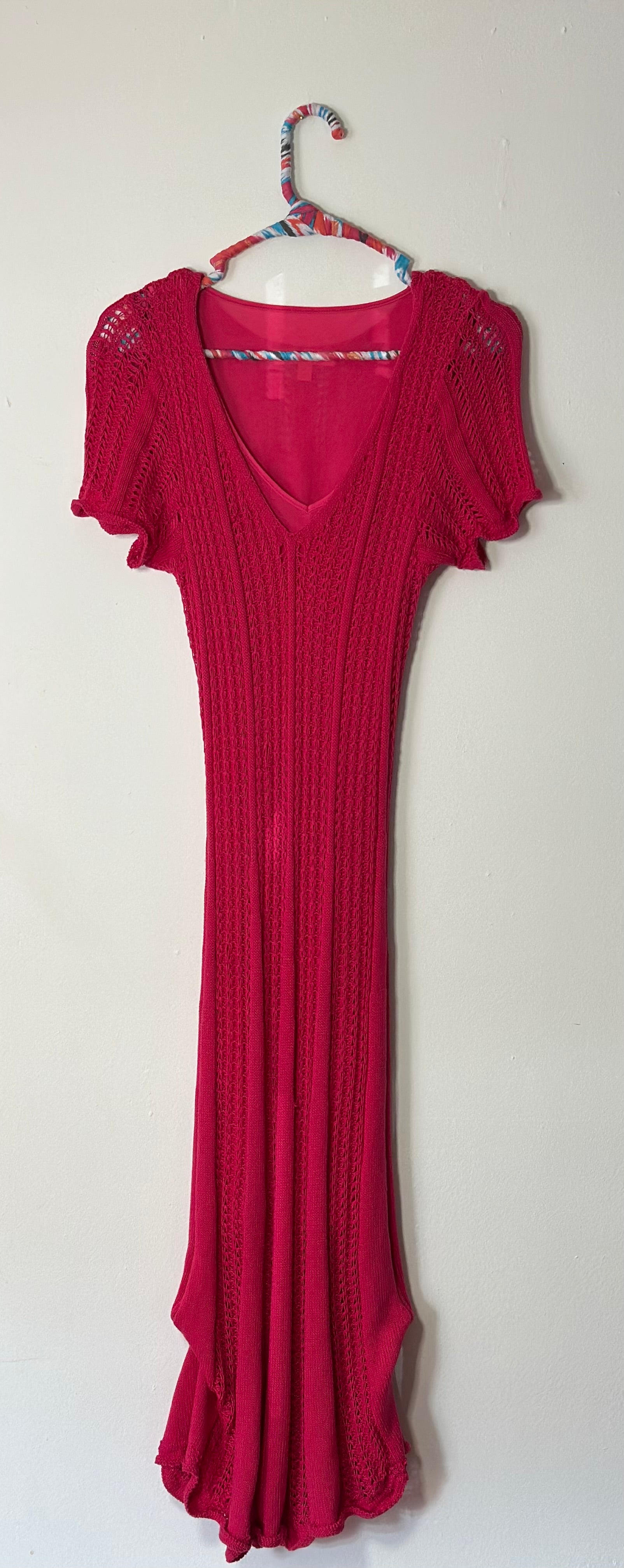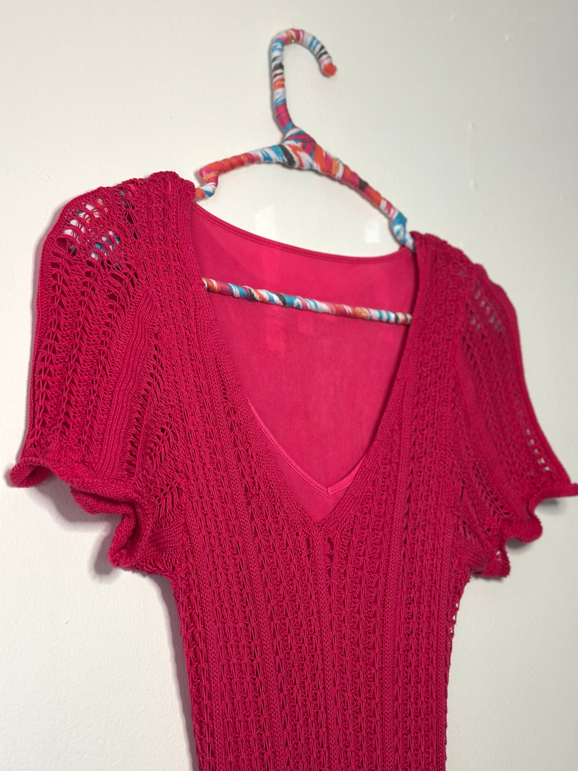 Pink Knit/Crochet Midi Dress